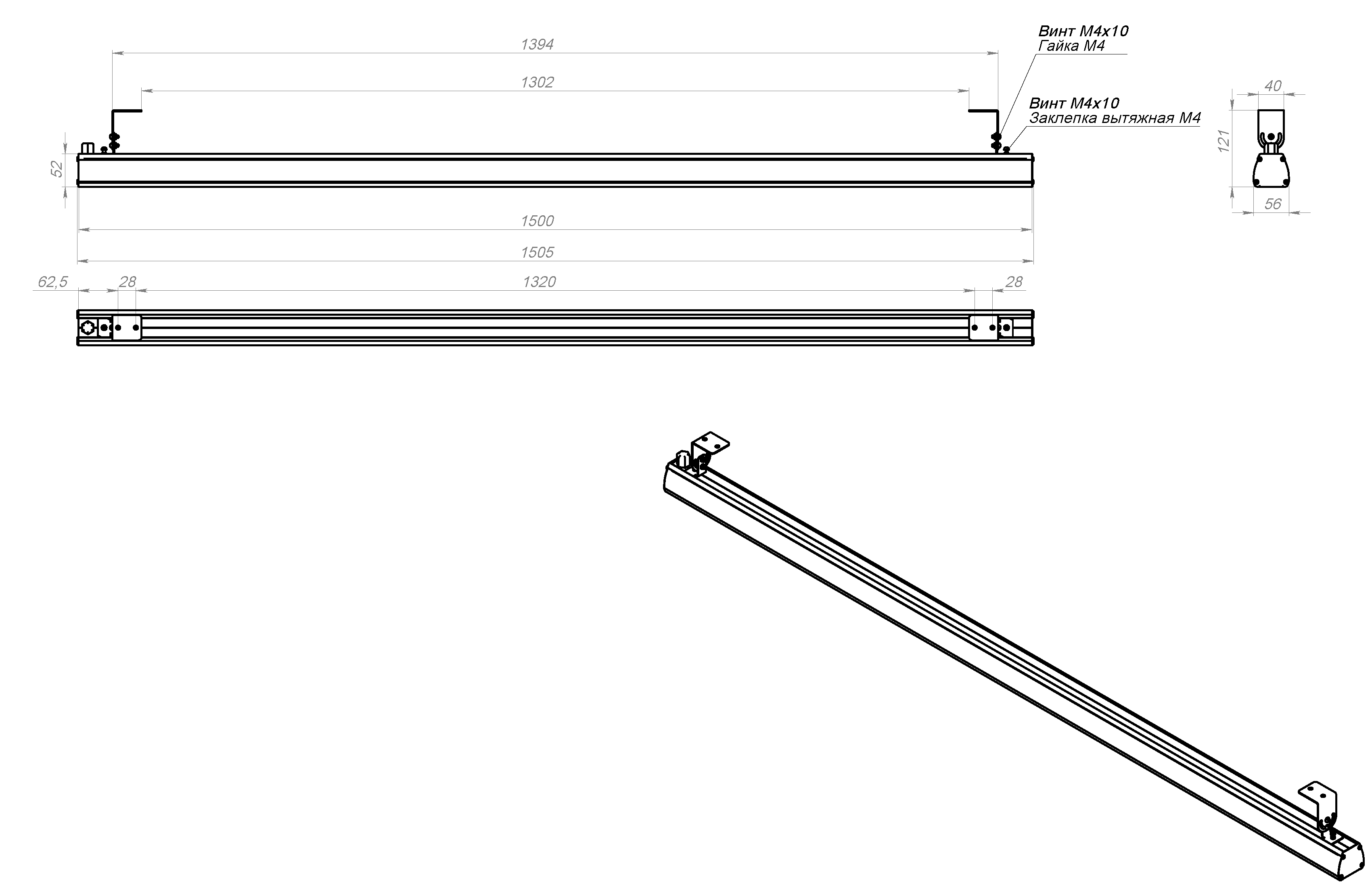 | Габаритные размеры без упаковки (ДхШхВ), мм | 1500х56х121 |