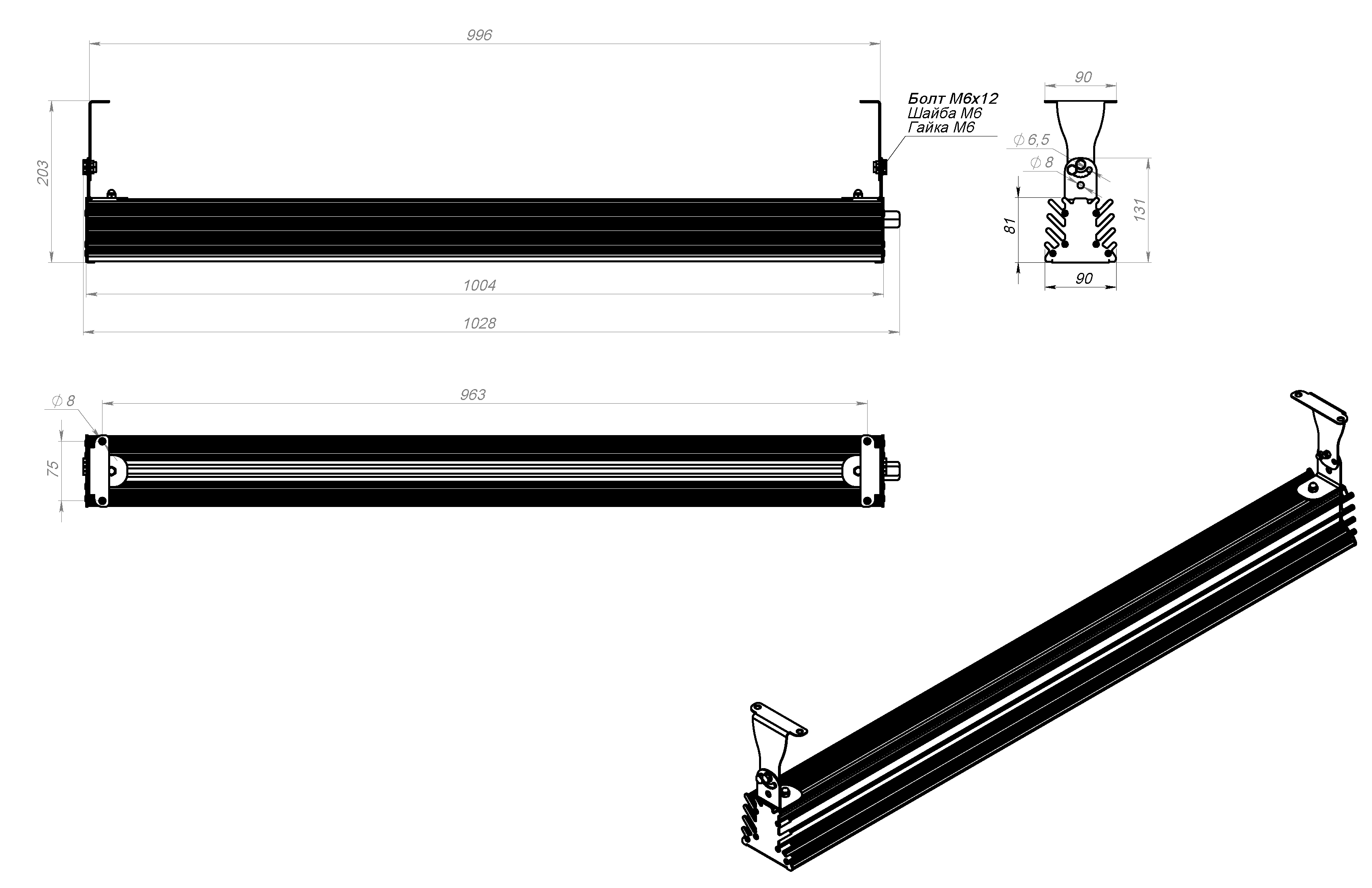 | Габаритные размеры без упаковки (ДхШхВ), мм | 1028х90х203 |