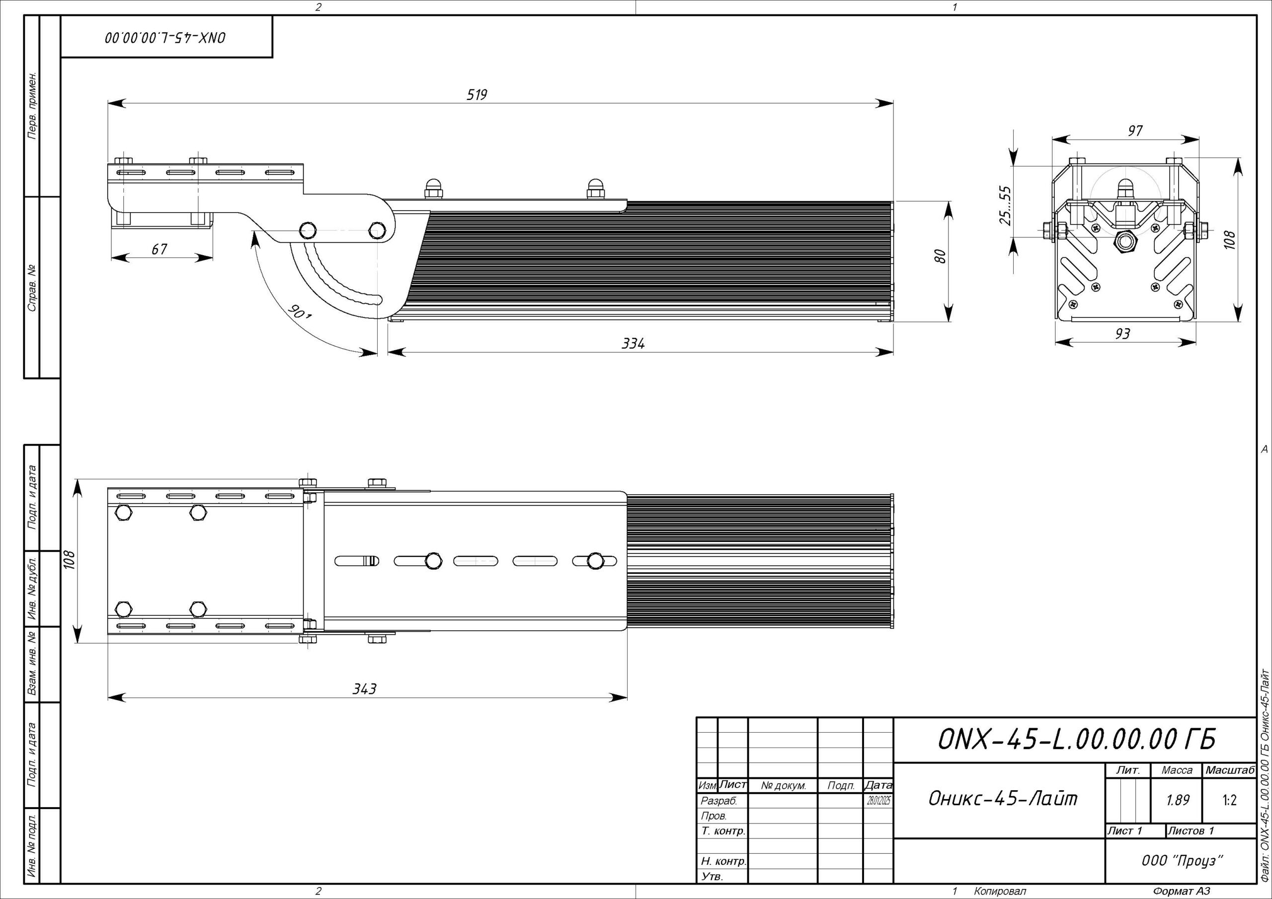 Светодиодный светильник Оникс-45-Лайт предназначен для освещения придомовых территорий и наружного освещения.
