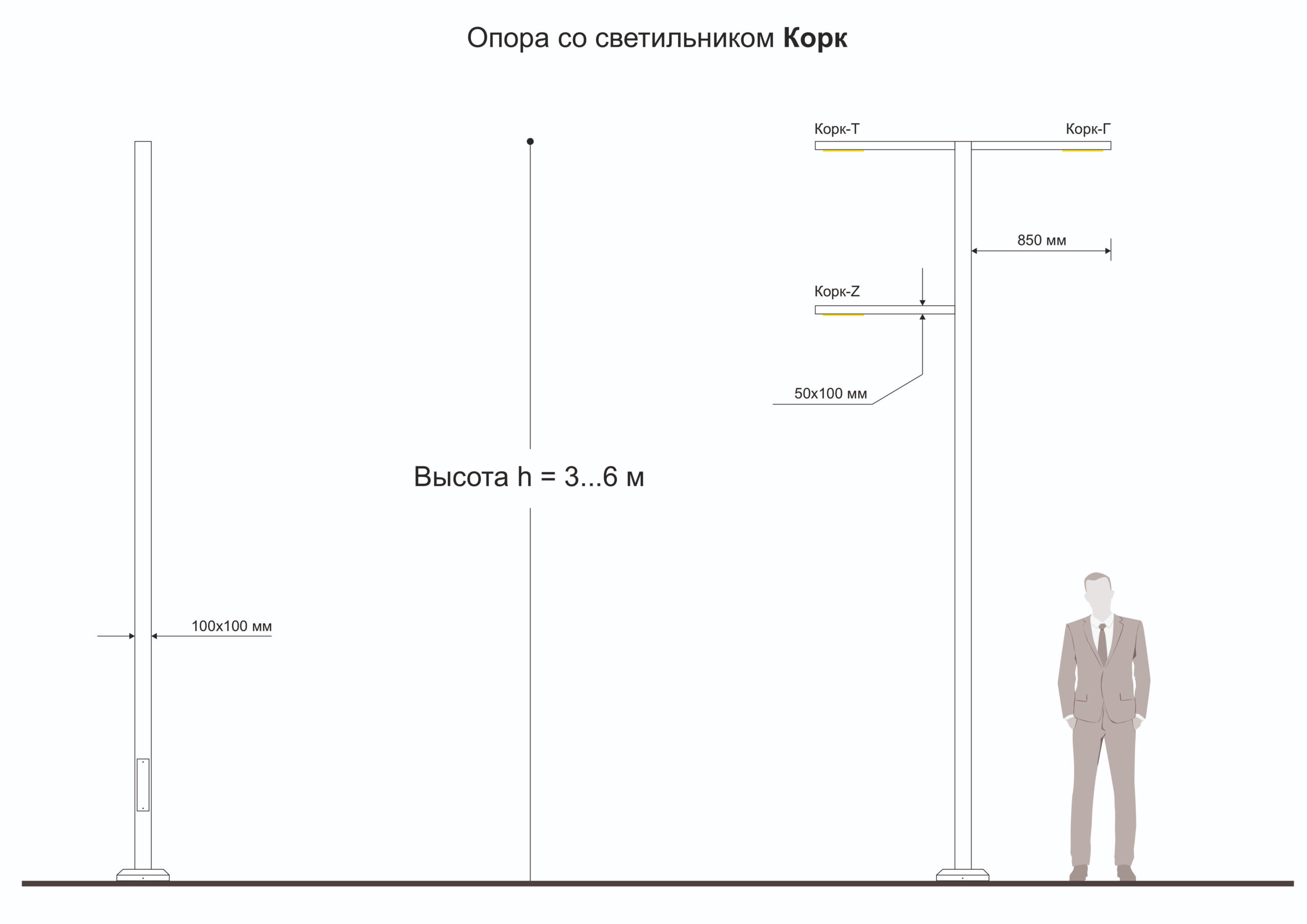Высота опорной металлоконструкции 3 — 9 метров с односторонней или двухсторонним креплением светильника (Типы Г, Т или Z). В опоре предусмотрен монтажно-ревизионный люк. Дополнительно опора может комплектоваться декоративными фланцевыми крышками, метизами, закладными деталями.